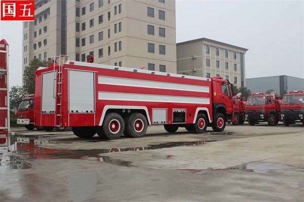 重汽豪沃23噸泡沫消防車,在豪沃底盤上改裝而成,配備常用消防器材,載液量水20m3+泡沫3m3,具有機動性好、操作方便、射程遠的特點,適用于消防隊、專職隊、大型企業、港口、碼頭、工業園、風景區等場所。