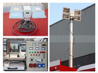 升降照明系統(tǒng) 升降照明系統(tǒng),由發(fā)電機(jī)組供電,通過(guò)氣泵系統(tǒng) **桅桿升降,起升高度7.6M,主燈4*1000W使照 明范圍更廣、更遠(yuǎn)。特別適用于夜間作業(yè)。 | ![]() | |