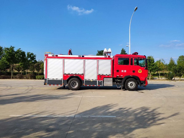 電氣配置 | 駕駛室頂部前端為長排**燈,車身后配有24V60W火場照明燈一只,車輛兩側上方各配有紅藍相配的爆閃燈,下方安裝安全標志燈,乘員室、器材箱、泵房內均裝有照明燈,加裝有100W**報燈,加轉**燈開關,通訊設備預留接口。 |
